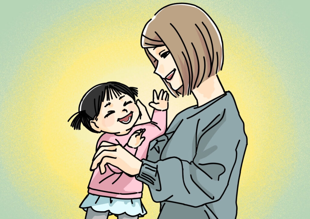 メディアは一方的な刺激になりますので、人と人とのやりとりが成立しません。コミュニケーションをとる時に、目を合わせることはとても重要です。メディアを使用するかわりに、お子さんと目を合わせながら、見る、聞く、嗅ぐ、味わう、触れるといった五感のバランスを育てるふれあい遊びをしたり、たくさんの豊かな言葉を与えることができる絵本を読んだりして、親子の楽しい大切な時間を過ごしていきませんか。